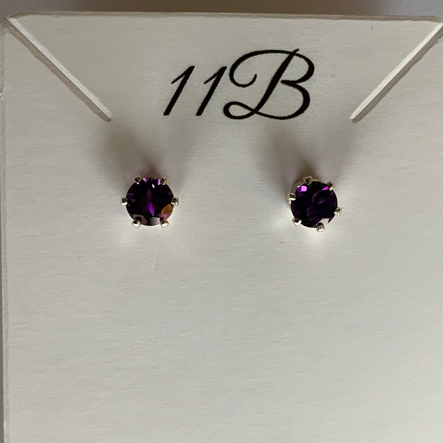 Sterling silver & 6 mm Amethyst gemstone earrings