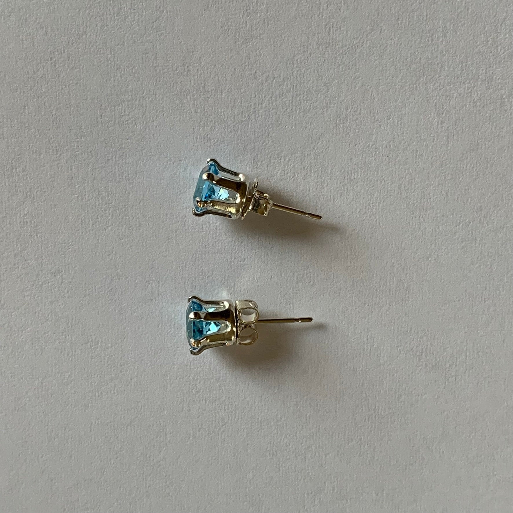 Sterling silver & 6 mm Blue Topaz gemstone earrings
