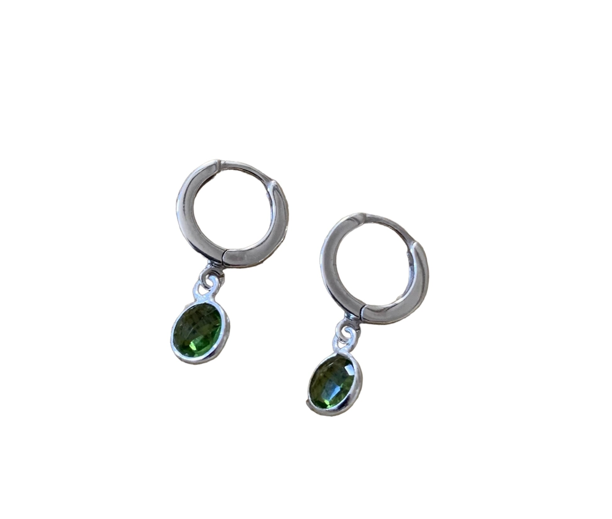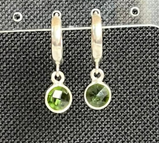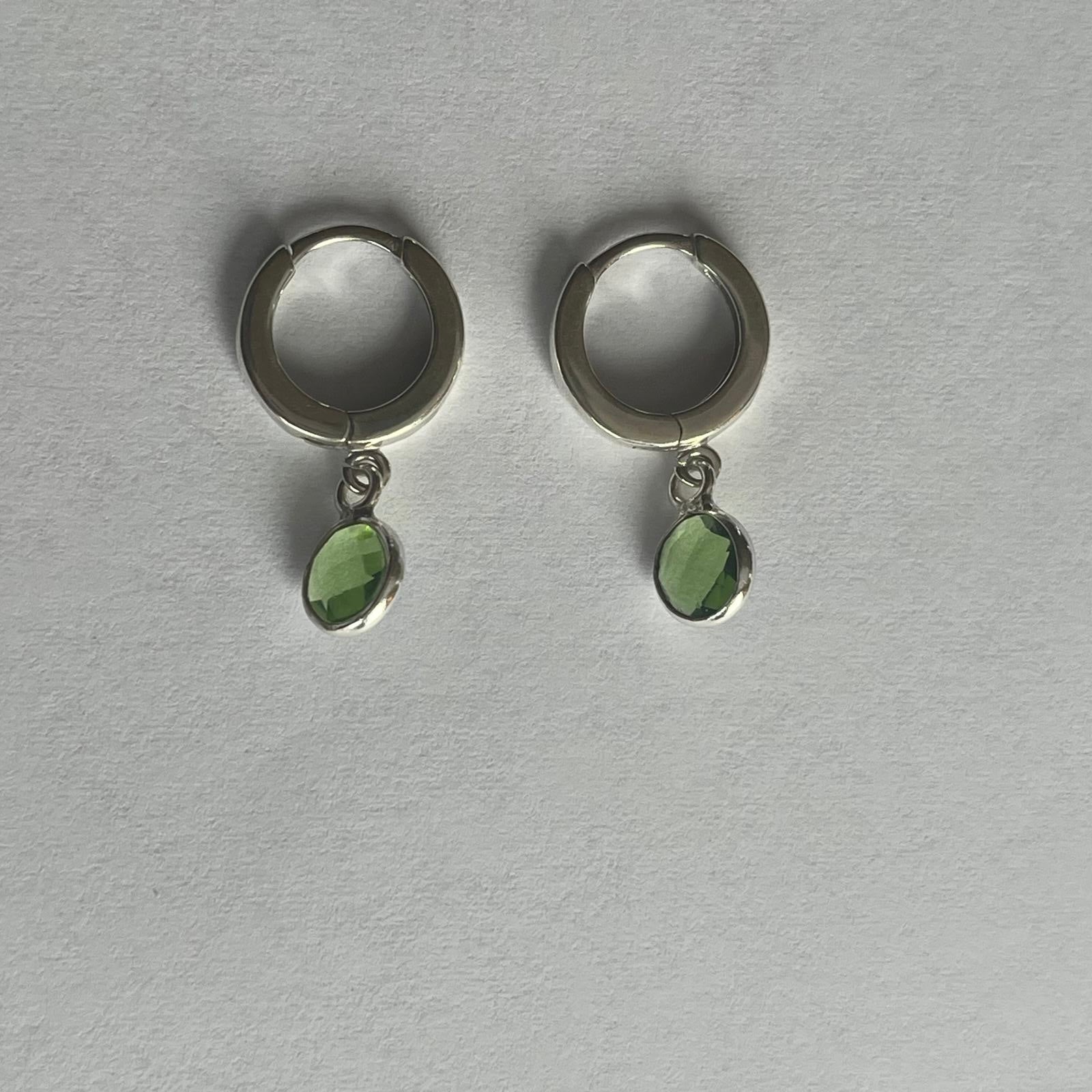 Green Quartz Silver Huggie Earrings
