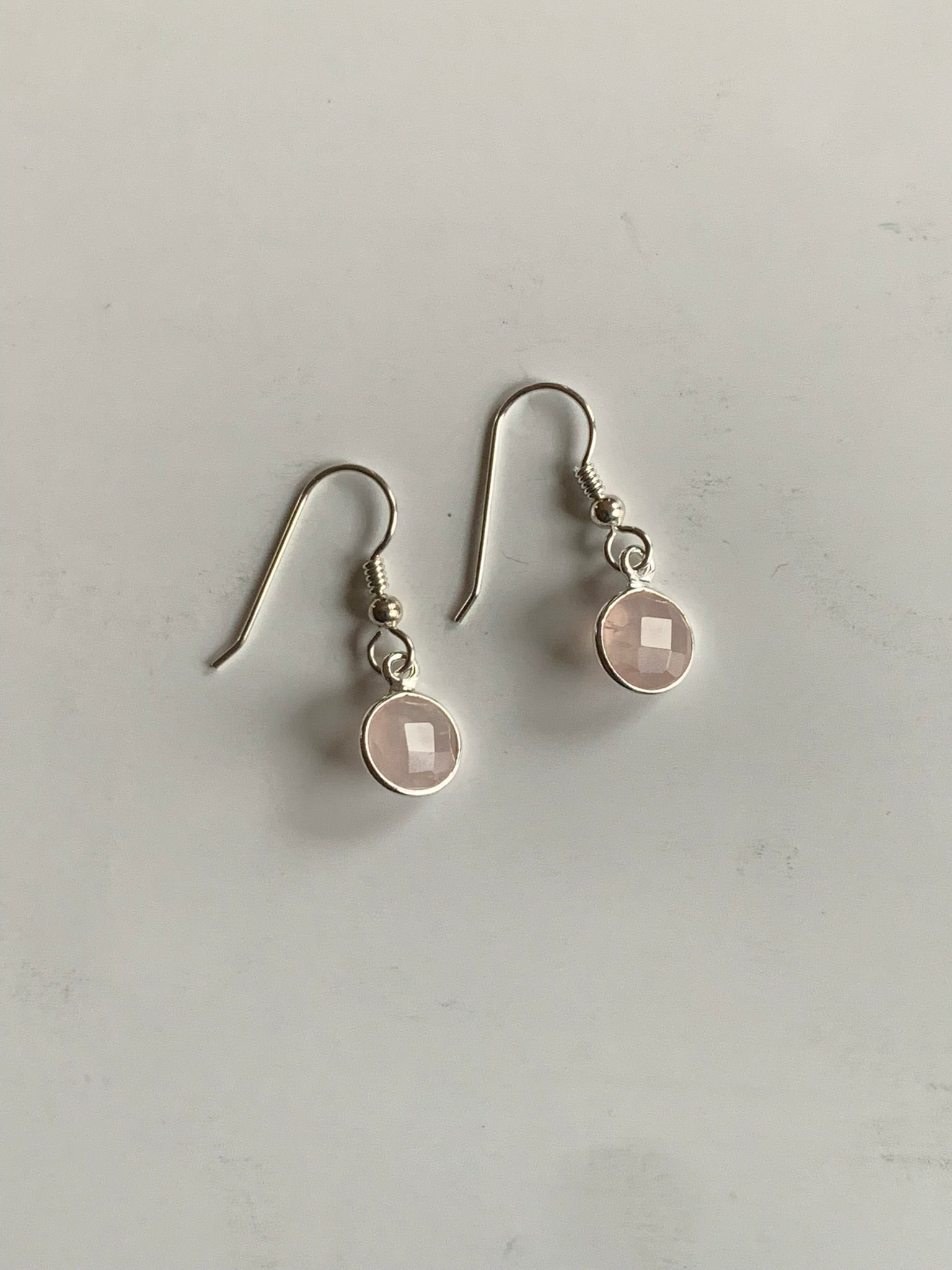 This elegant earrings are made of beautiful pink faceted quartz that sparkles in every angle