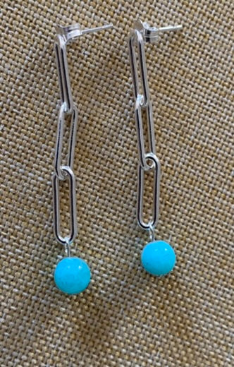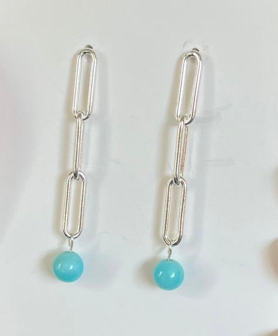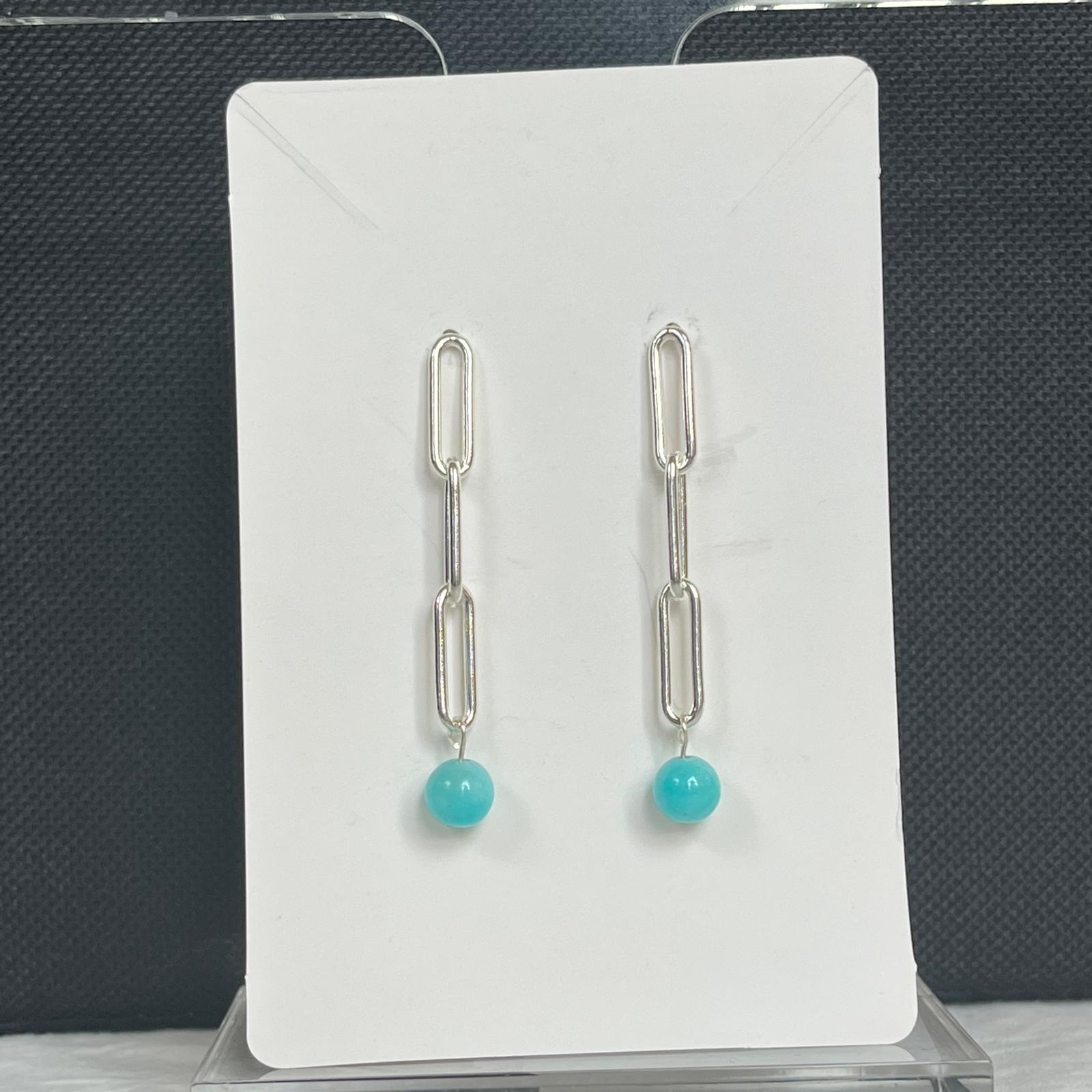 Silver Paper Clip & Amazonite Earrings